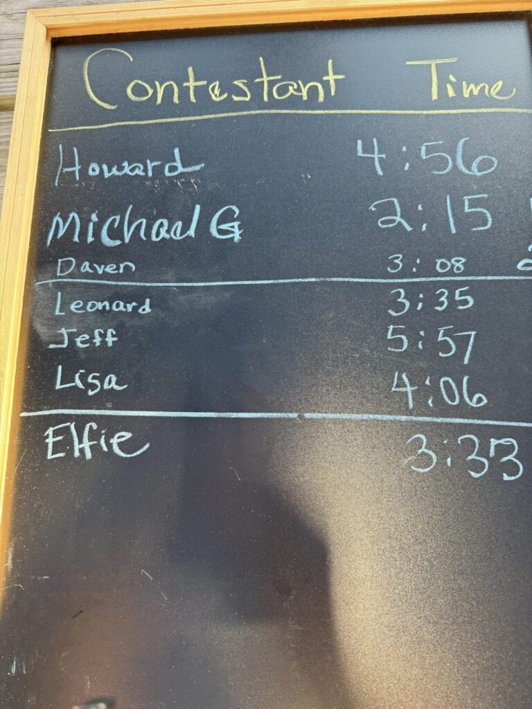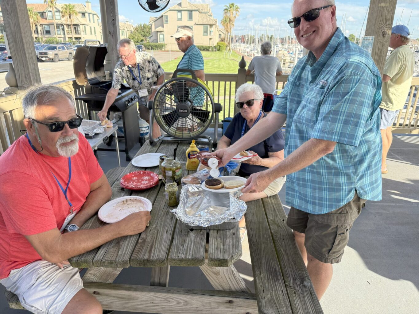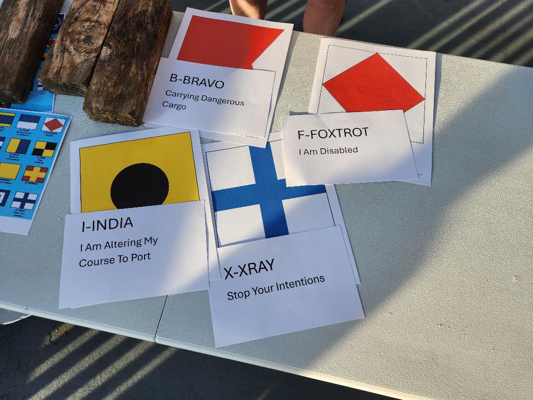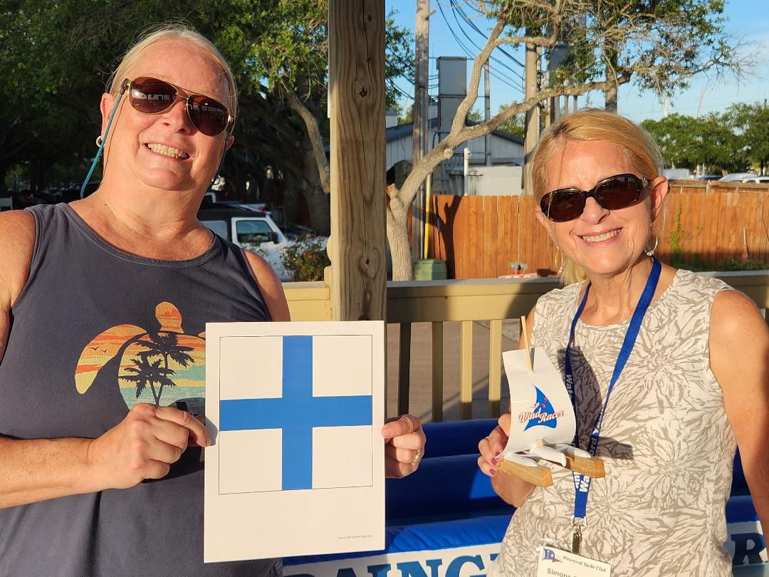 Games – Social Directors Amy Holdaway and Simmone Gordon assembled a challenging and fun filled afternoon of boating education and friendly competition among the membership. At different corners of Pavilion B we were tested on different rope knots, signal flags and rain gutter sailboat race. Our course time was carefully recorded with Michael Gordon winning, but with so much great food everyone was a winner. Note: the ‘F’ foxtrot red diamond signal flag indicate distress, but you should also call your tow service.